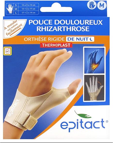 Le port pendant la journée de l'orthèse fonctionnelle proprioceptive epitact aide à soulager les douleurs articulaires à la base du pouce (rhizarthrose), en limitant les.